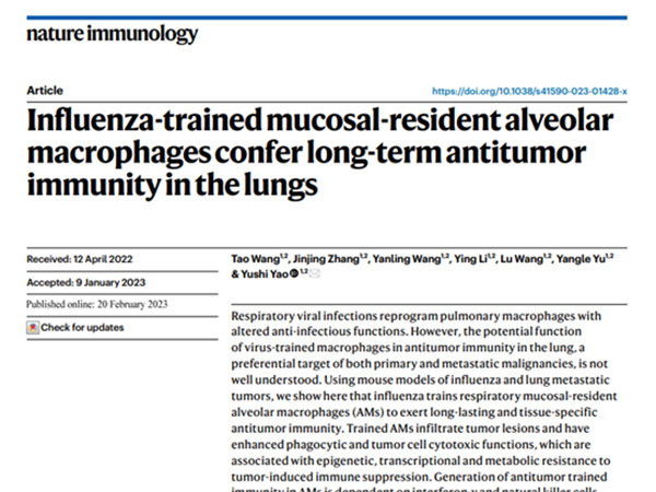 坐標(biāo):浙江大學(xué)醫(yī)學(xué)院附屬邵逸夫醫(yī)院浙江大學(xué)醫(yī)學(xué)中心良渚實(shí)驗(yàn)室呼吸道病毒感染重塑了肺巨噬細(xì)胞的抗感染功能。然而,病毒訓(xùn)練的巨噬細(xì)胞在肺的抗腫瘤免疫中的潛在功能,一個(gè)原發(fā)性和轉(zhuǎn)移性惡性腫瘤的優(yōu)先目標(biāo),還沒有很好地理解。近日,浙江大學(xué)姚雨石團(tuán)隊(duì)在Nature Immunology (IF=31)在線發(fā)表題